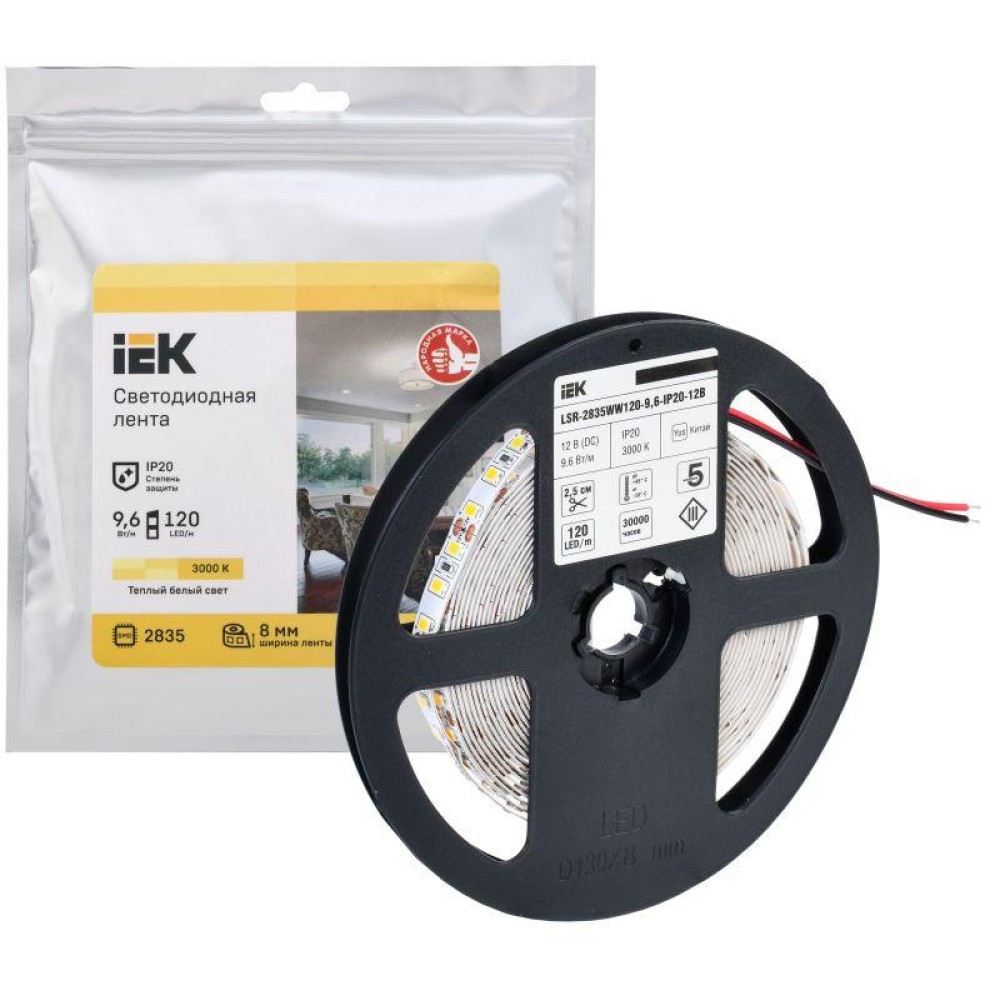 Лента светодиодная LED LSR-2835WW120-9.6-IP20-12В (уп.5м) IEK LSR1-1-120-20-3-05