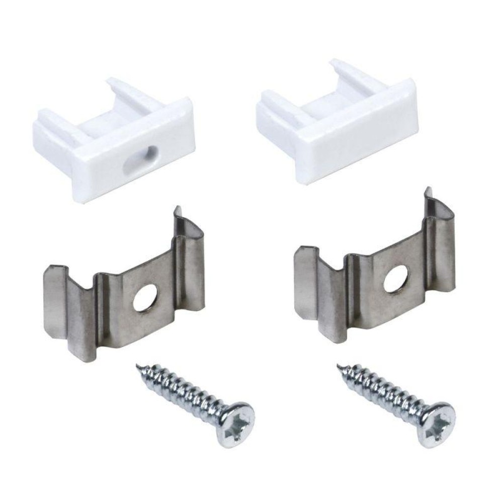 Набор для монтажа алюминиевого профиля - это дополнительный комплект торцевых заглушек, крепежных скоб и саморезов, предназначенный для систем освещения, в которых согласно проекту, профиль необходимо разрезать на несколько частей. В таких случаях монтажных аксессуаров, поставляемых в комплекте с профилем, будет недостаточно для крепления нескольких отрезков.