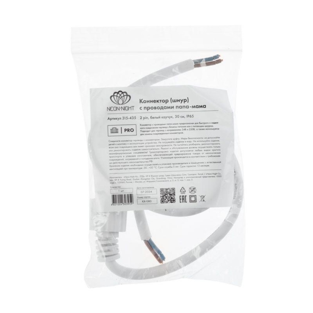 Технические характеристики Коннектор с проводами папа-мама 2 pin бел. каучук Neon-Night 315-435