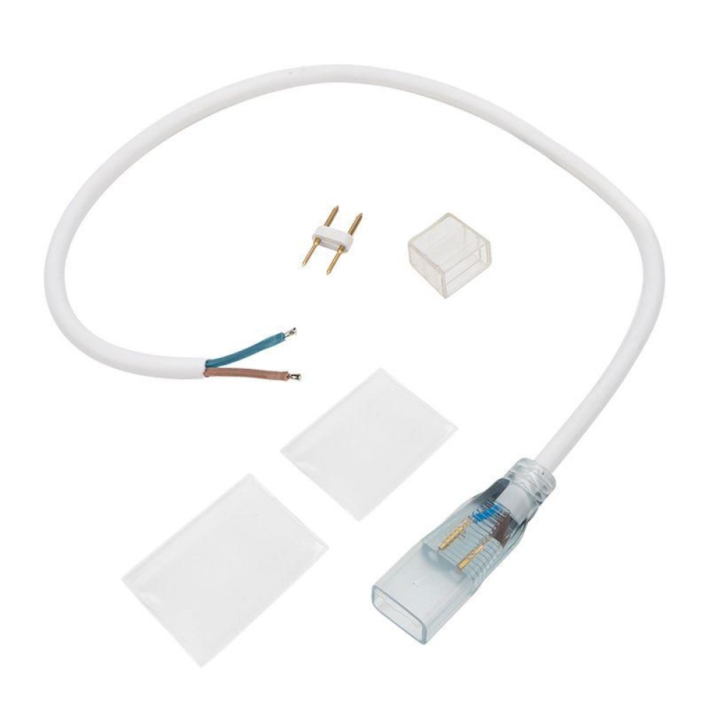 Данный комплект подойдет для подключения одностороннего неона 8x16 мм с напряжением 24В к источнику питания, либо для соединения и коммутации отрезков одностороннего неона 8х16 мм с напряжением 220В на расстоянии друг от друга с помощью данных коннекторов и кабеля ПВС.