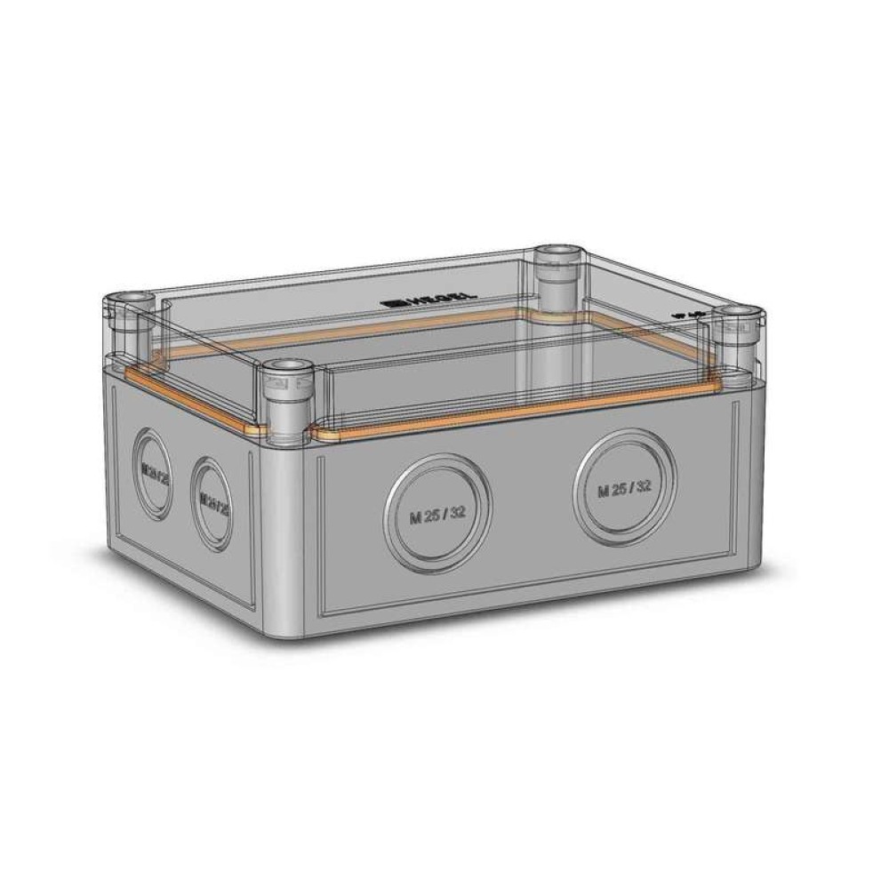 Коробка АБС низкая прозр. крышка св. сер. МП HEGEL КР2801-421