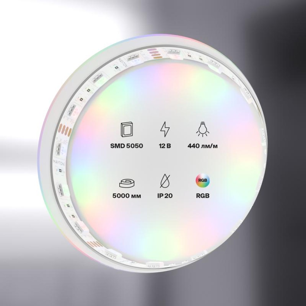 Технические характеристики Лента светодиодная 12В 5050 14.4Вт/м RGB IP20 (уп.5м) Maytoni 10134