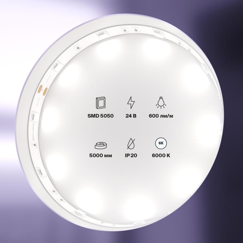Технические характеристики Лента светодиодная 24В 5050 7.2Вт/м 6000К IP20 (уп.5м) Maytoni 10162