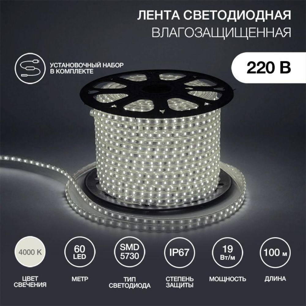 Лента светодиодная SMD5730 6.5x13мм 60LED/м 220В IP67 бел. (уп.100м) Neon-Night 142-701
