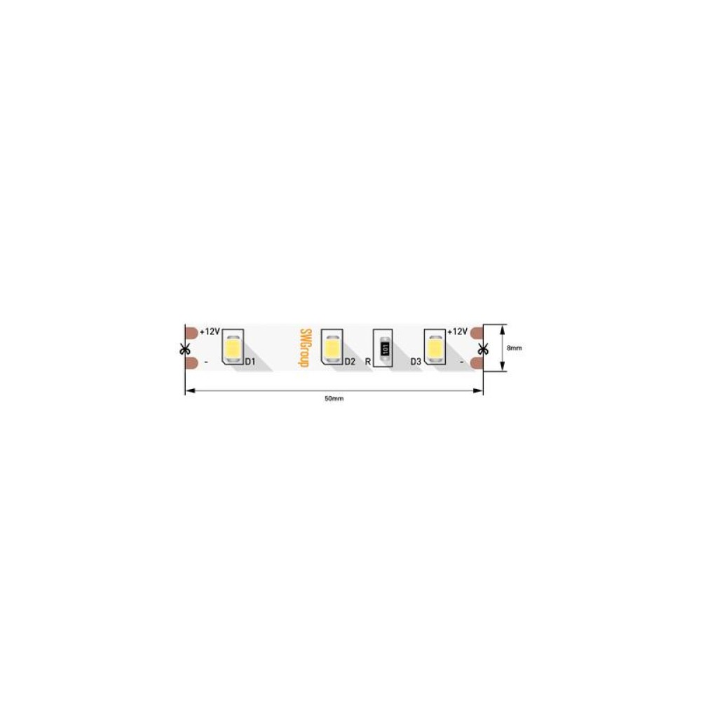 Технические характеристики Лента светодиодная стандарт 2835 60LED/м 4.8Вт/м нейтр. бел. 12В IP20 со скотчем 3М (уп.5м) SWG Stan