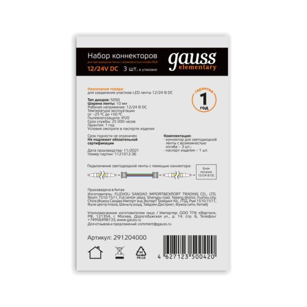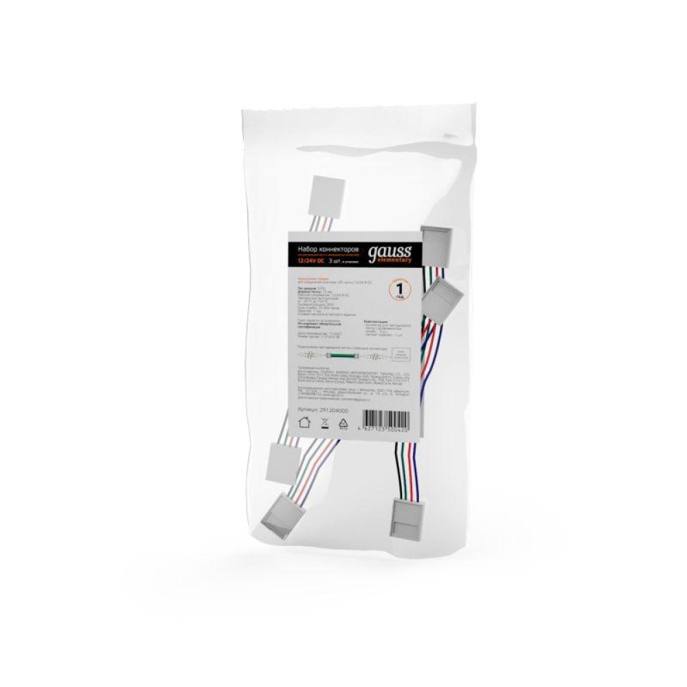 Технические характеристики Набор коннекторов для светодиодной ленты 10мм RGB с возможностью изгиба (уп.3шт) GAUSS 291204000