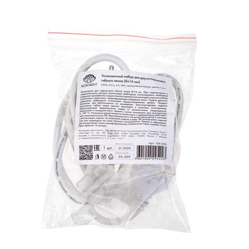 Установочный комплект подходит для подключения двухстороннего гибкого неона SMD 8х16 мм, 220 В, 1,5 м NEON-NIGHT