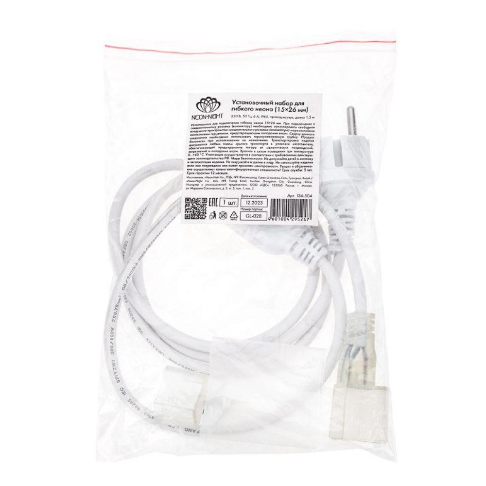 Установочный комплект подходит для подключения одностороннего гибкого неона SMD 15х26 мм, 220 В, 1,5 м NEON-NIGHT.