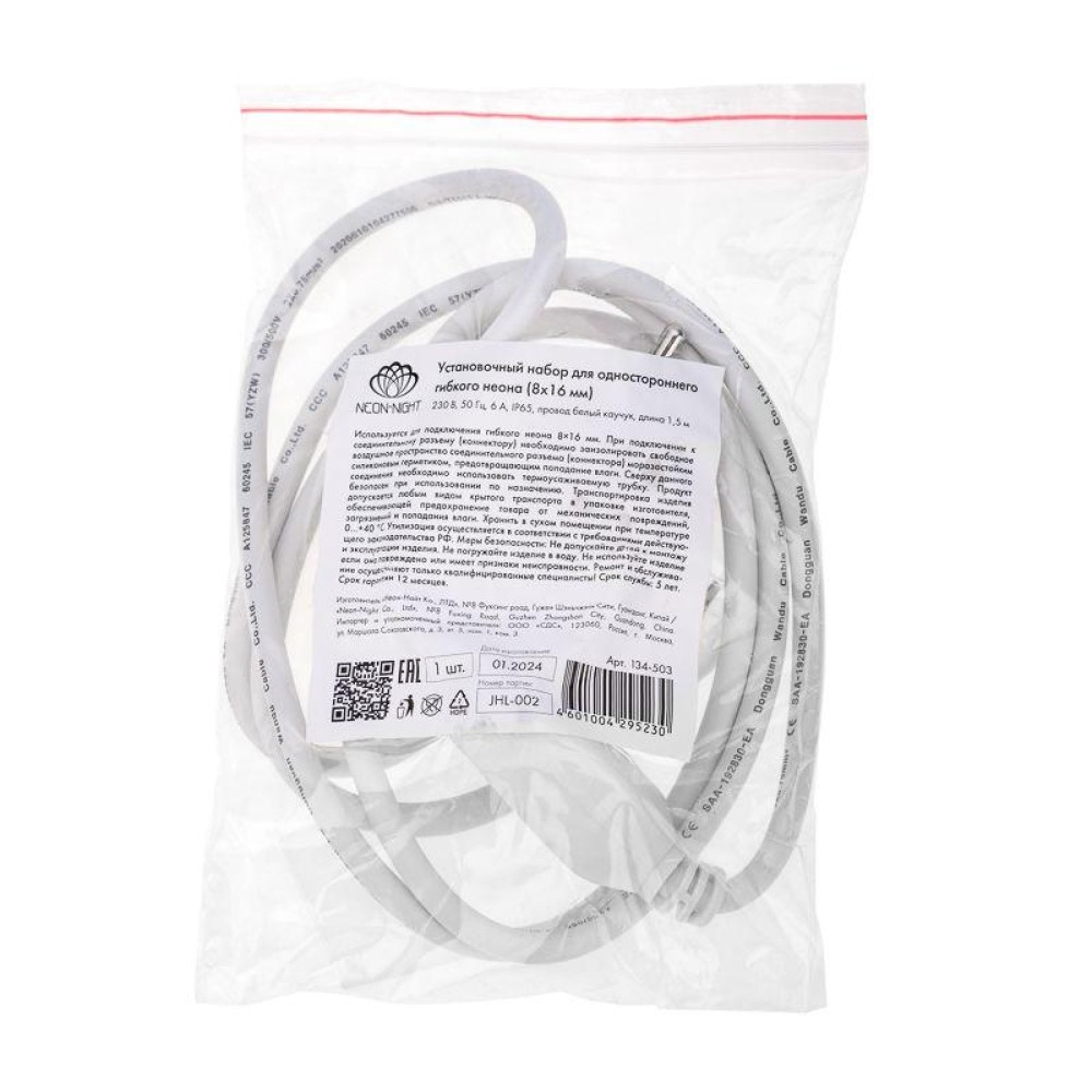 Установочный комплект подходит для подключения одностороннего гибкого неона SMD 8х16 мм, 220 В, 1,5 м NEON-NIGHT.