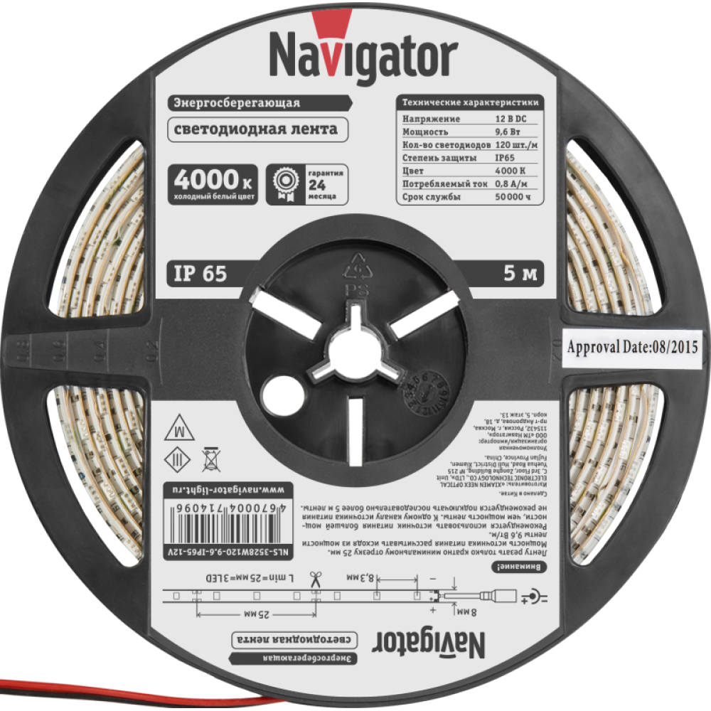 Технические характеристики Лента светодиодная 71 409 NLS-3528W120-9.6 IP65 12B R5 9.6Вт/м (уп.5м) Navigator 71409