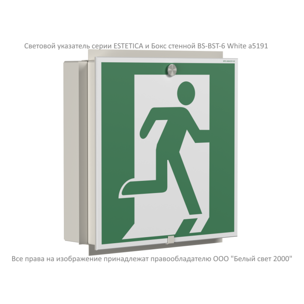 Световой указатель предназначен для установки на поверхность стен. Также возможно встраивание в стену с помощью бокса BS-BST-6.