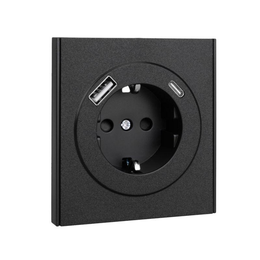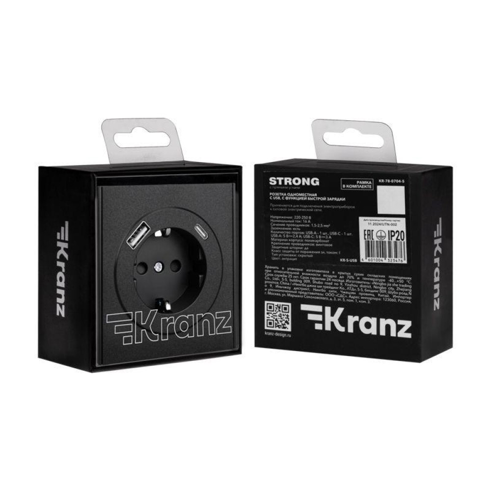Розетка 1-м СП STRONG MIELE 16А с заземл. защ. шторки с USB A+C быстрой зарядки 5В/3А антрацит Kranz