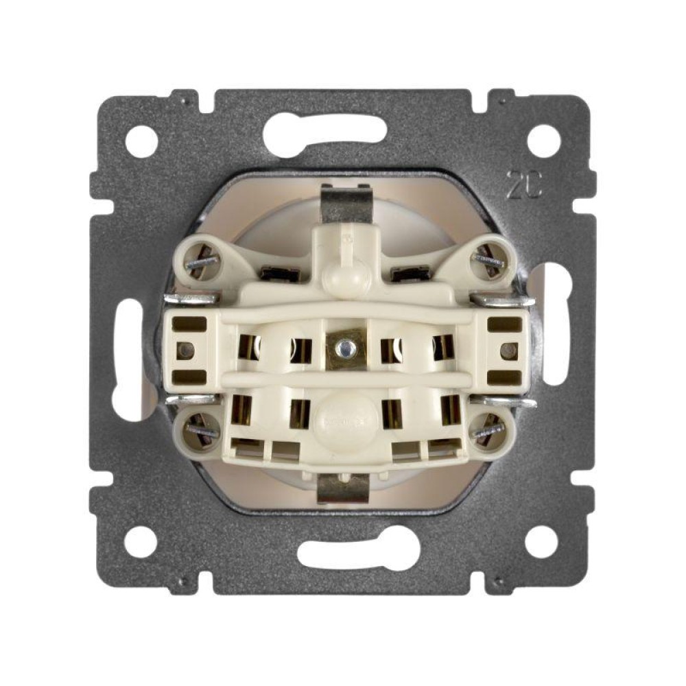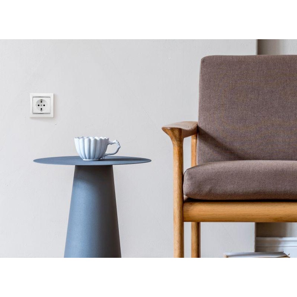 Представляет собой одноместный модуль розетки, со стороной 71 мм, с защитным контактом стандарта SCHUKO. Изготовлен из пластика, с необработанной поверхностью, белого цвета. Монтируется под штукатурку.