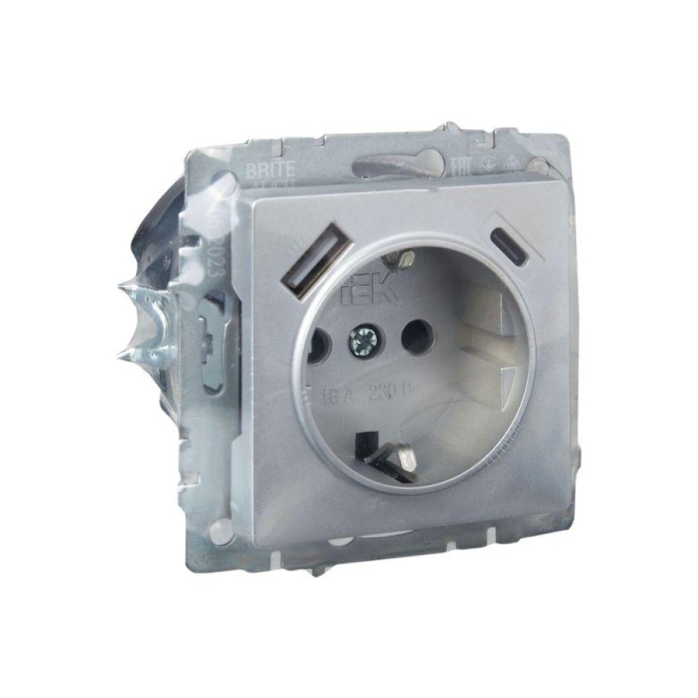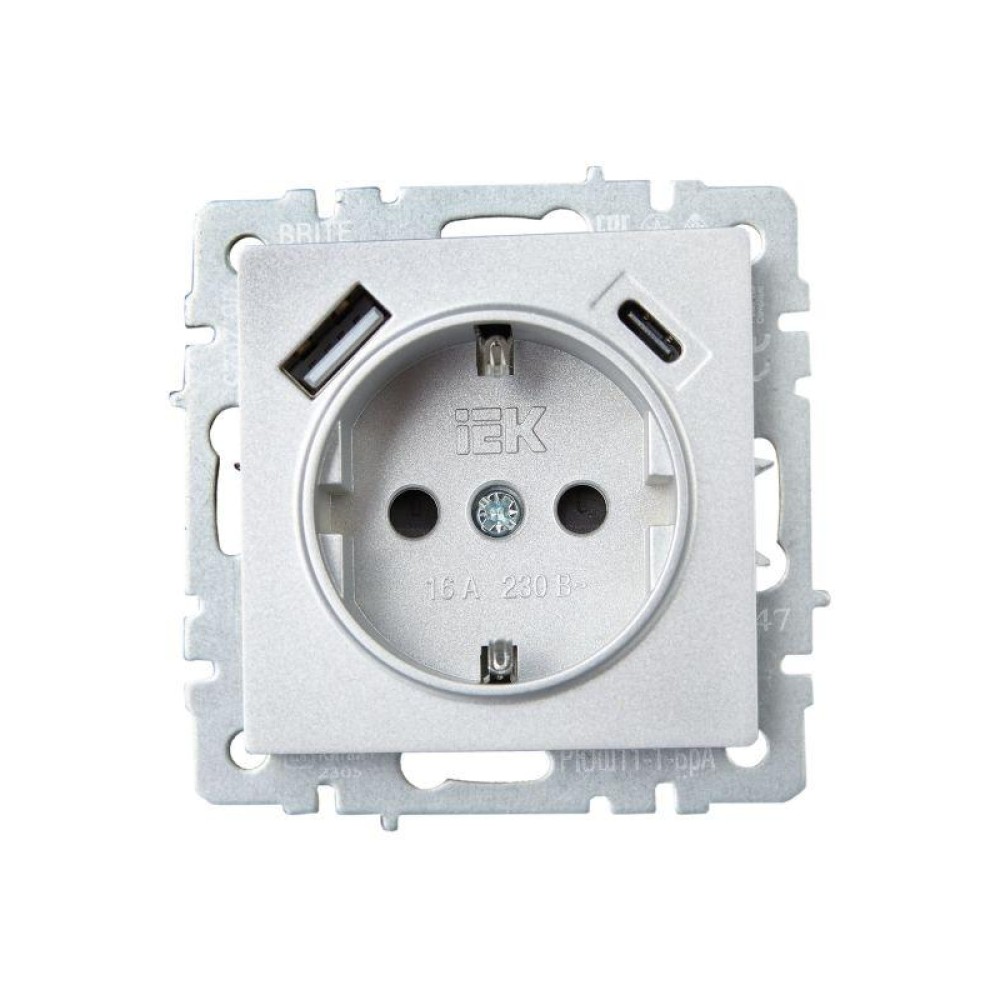 Технические характеристики Розетка BRITE РЮш11-1-БрА 16А с USB A+C 18Вт с заземл. защ. шторки механизм алюм. IEK BR-R14-16-U22-