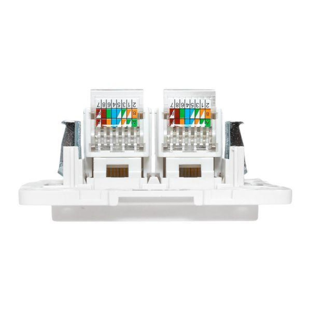 Розетка двухместная RJ45 EKF серии Стокгольм станет отличным решением для стильного помещения при подключении устройств к сети Интернет. Выполнена из поликарбоната, устойчивого к ультрафиолетовому излучению. Изделие необходимо дополнить рамкой.