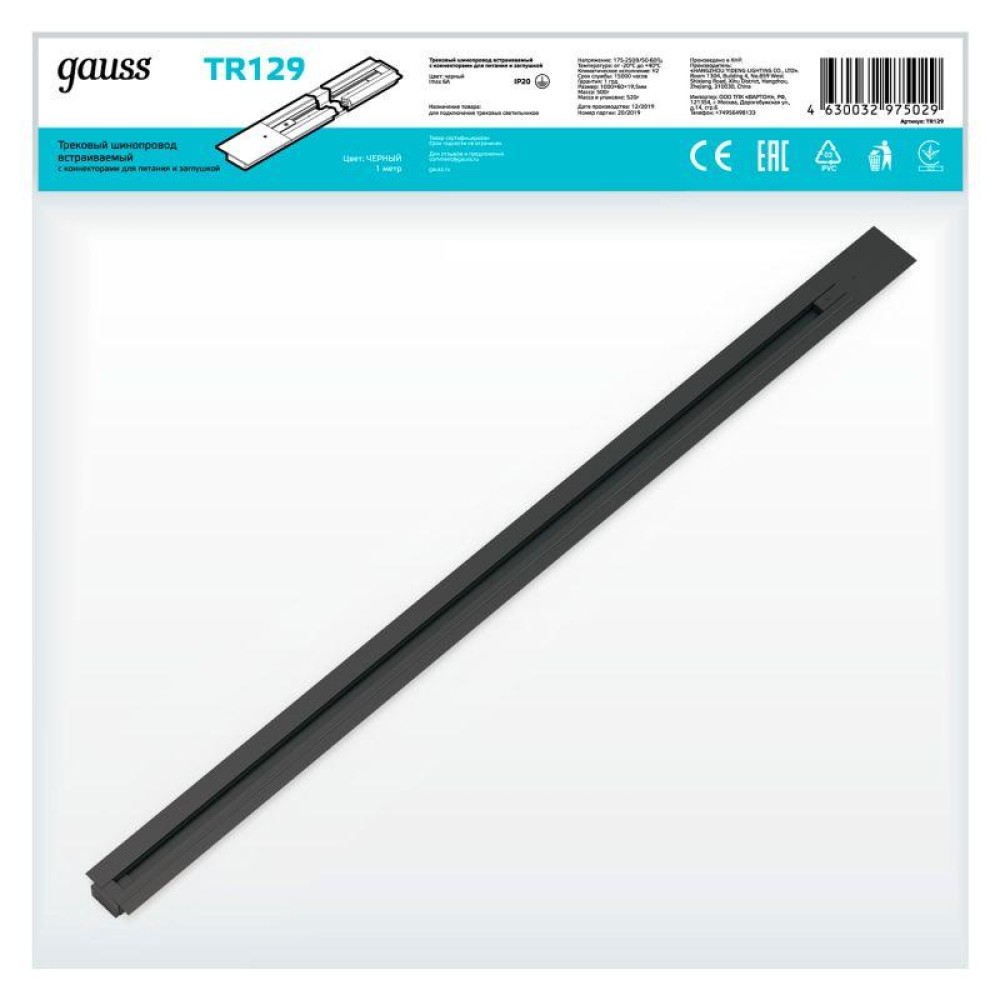 Технические характеристики Шинопровод однофазный L1000 Track встраив. с адаптером питания и заглушкой черн. GAUSS TR129