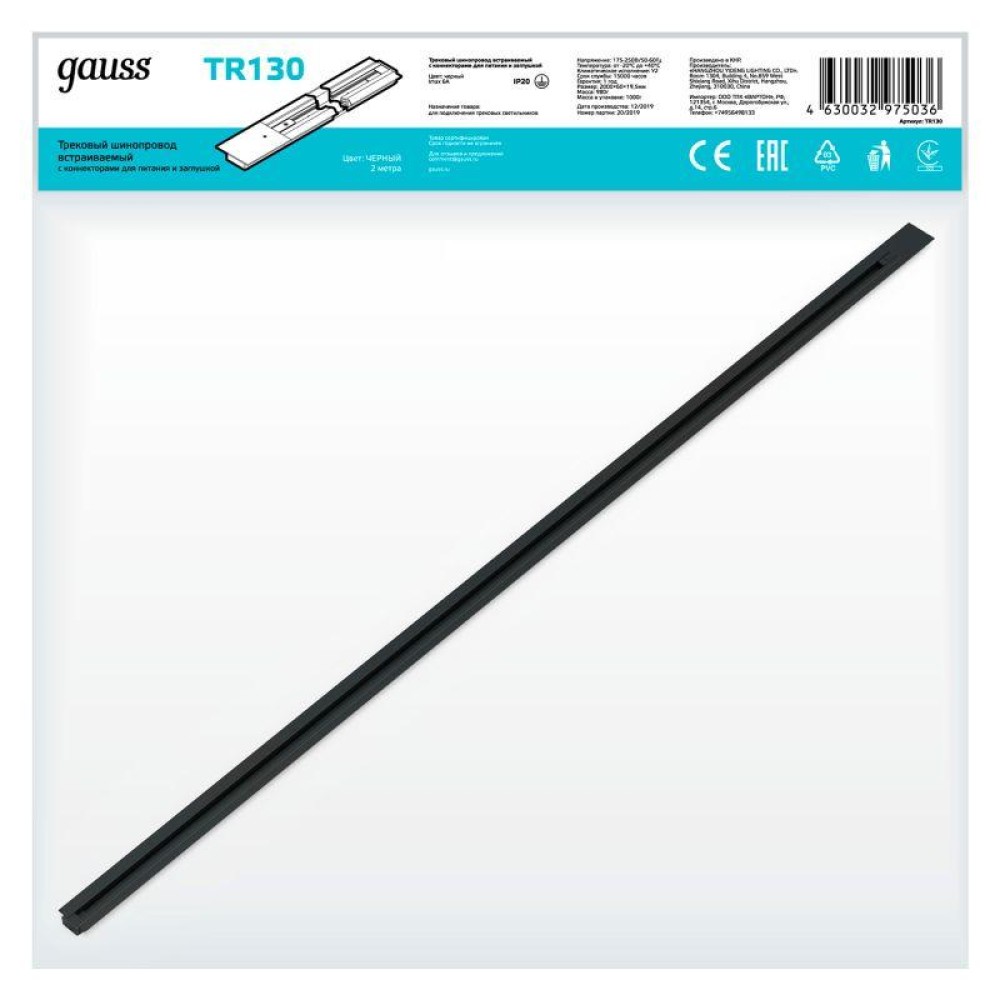 Технические характеристики Шинопровод однофазный L2000 Track встраив. с адаптером питания и заглушкой черн. GAUSS TR130