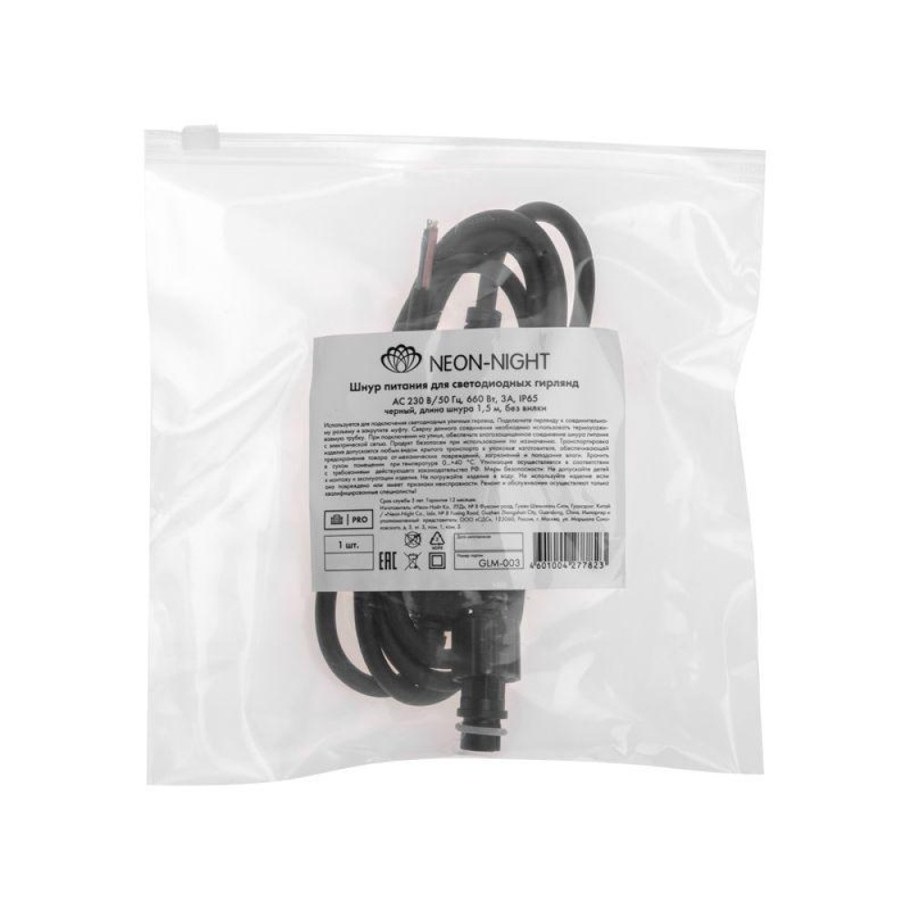 Шнур питания для уличных гирлянд (без вилки) 3А провод черн. IP65 Neon-Night 315-003