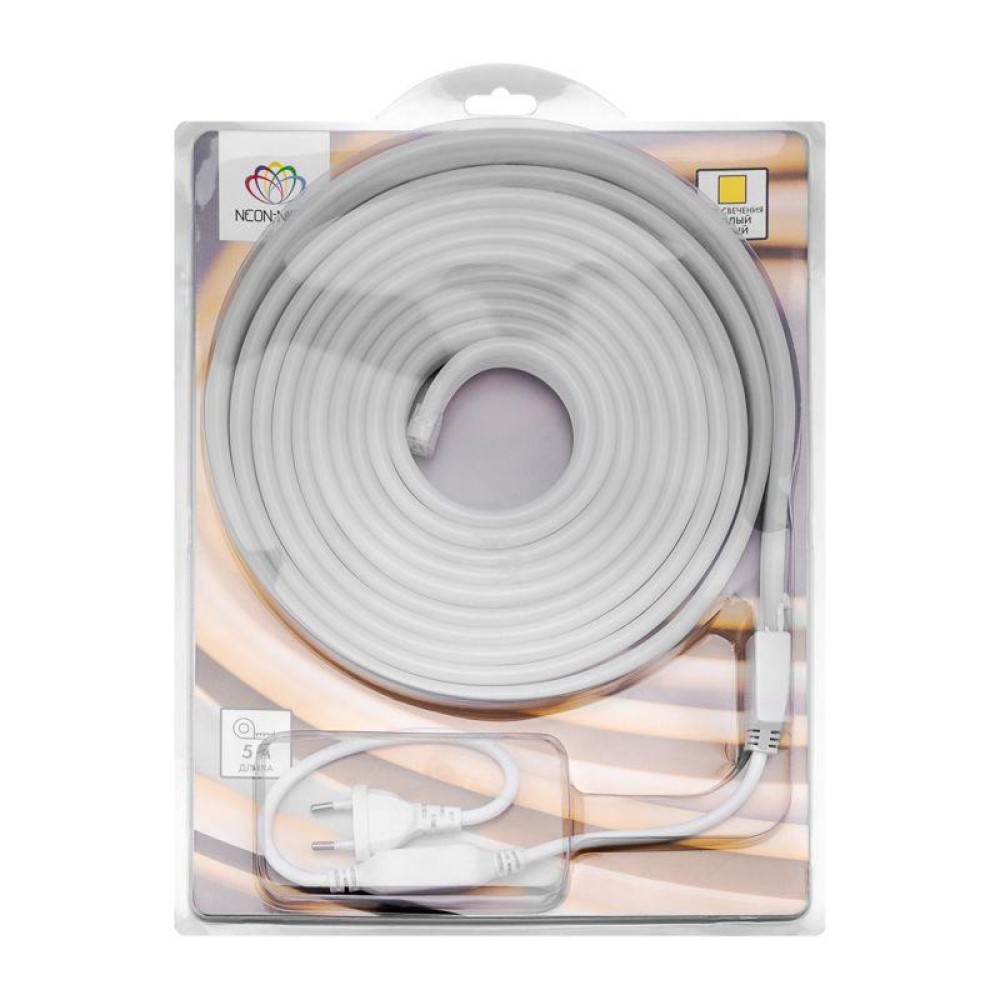Шнур светодиодный гибкий неон LED SMD 8х16мм 120LED/м односторонний тепл. бел. 5м Neon-Night 131-006