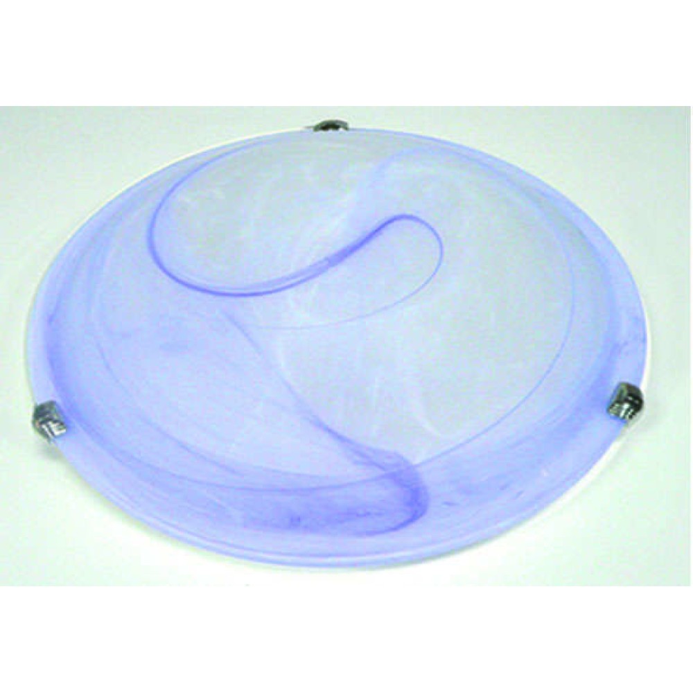 Алюминиевое основание окрашено белой краской. Металлических держатели хромированы. Патрон керамический. Плафон изготовлен из плотного алебастрового стекла. Добавление алебастровых красителей придает ему легкий размытый оттенок голубого цвета.