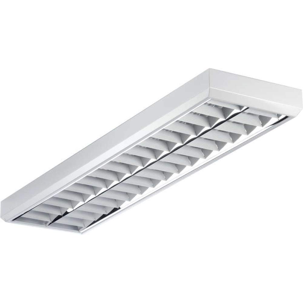 Накладной светильник для учебных и офисных помещений. V-образная отражающая решетка из алюминия марки Alanod обеспечивает высокий КПД светильника. Крепление на поверхность потолка. Для установки светильника необходимо заказать Комплект крепления х 4 (код заказа – 2995000040). Цельнометаллический сварной корпус из листовой стали, покрытый белой порошковой краской. В корпусе установлена пускорегулирующая аппаратура.