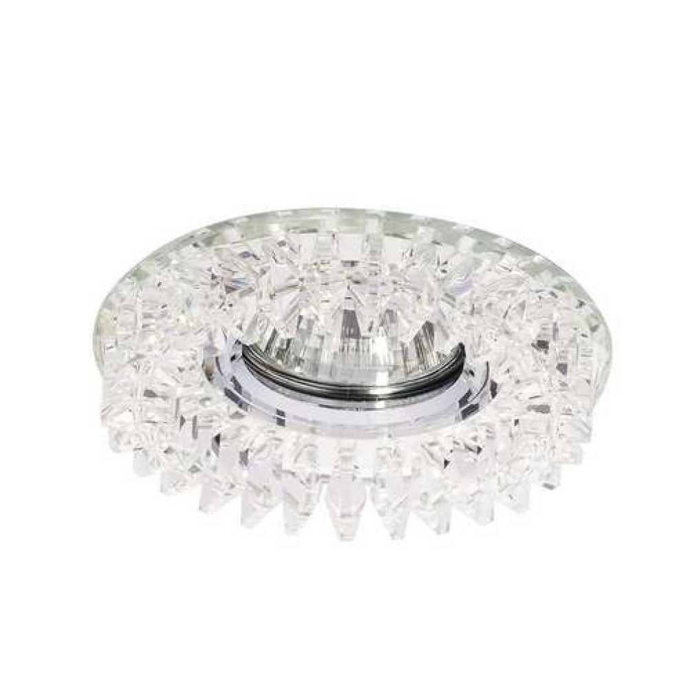 Корпус круглый, диаметром 95 мм, днище из толстого стекла, декорирован ограненным стеклом, имитирующим хрустальное украшение. Монтажное отверстие диаметром 65 мм.