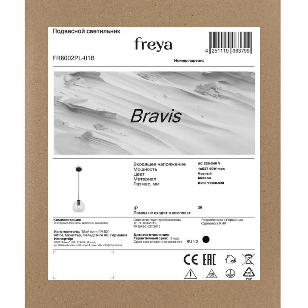 Технические характеристики Светильник Bravis 60Вт E27х1 IP20 подвесной Freya FR8002PL-01B