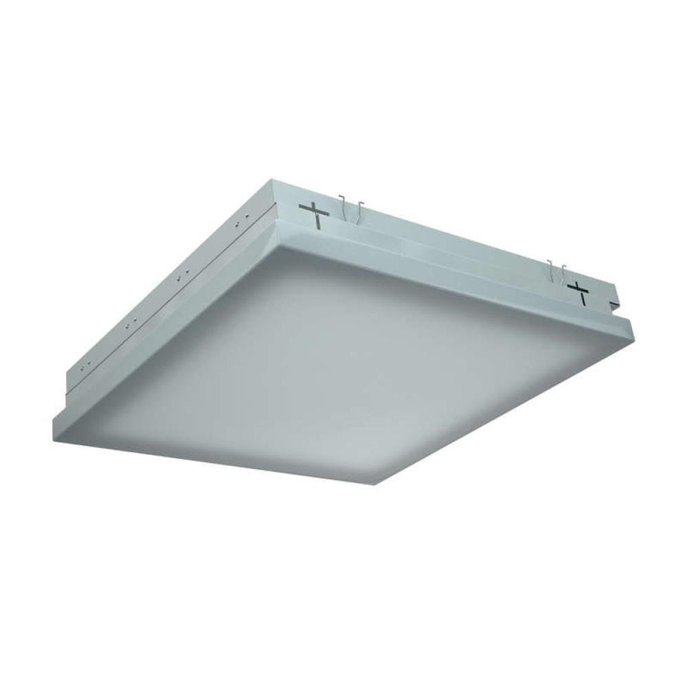 Встраиваемый светильник для офисных и учебных помещений. Оптимален для помещений, где необходим мягкий рассеянный свет. Особенностью светильника является рассеиватель, выступающий из потолка на 3,5 см. Встраиваются в подвесные потолки типа Армстронг с шириной полки несущего Т-образного профиля 15 и 24 мм или в подшивные потолки из гипсокартона с помощью клипс. Код заказа клипс — 2905000110 (4 штуки). Цельнометаллический сварной корпус, покрытый белой порошковой краской. В корпусе установлена пускорегулирующая аппаратура.