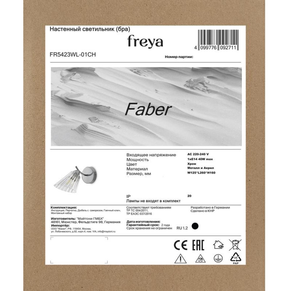 Технические характеристики Светильник Faber 40Вт E14х1 IP20 бра настен. Freya FR5423WL-01CH