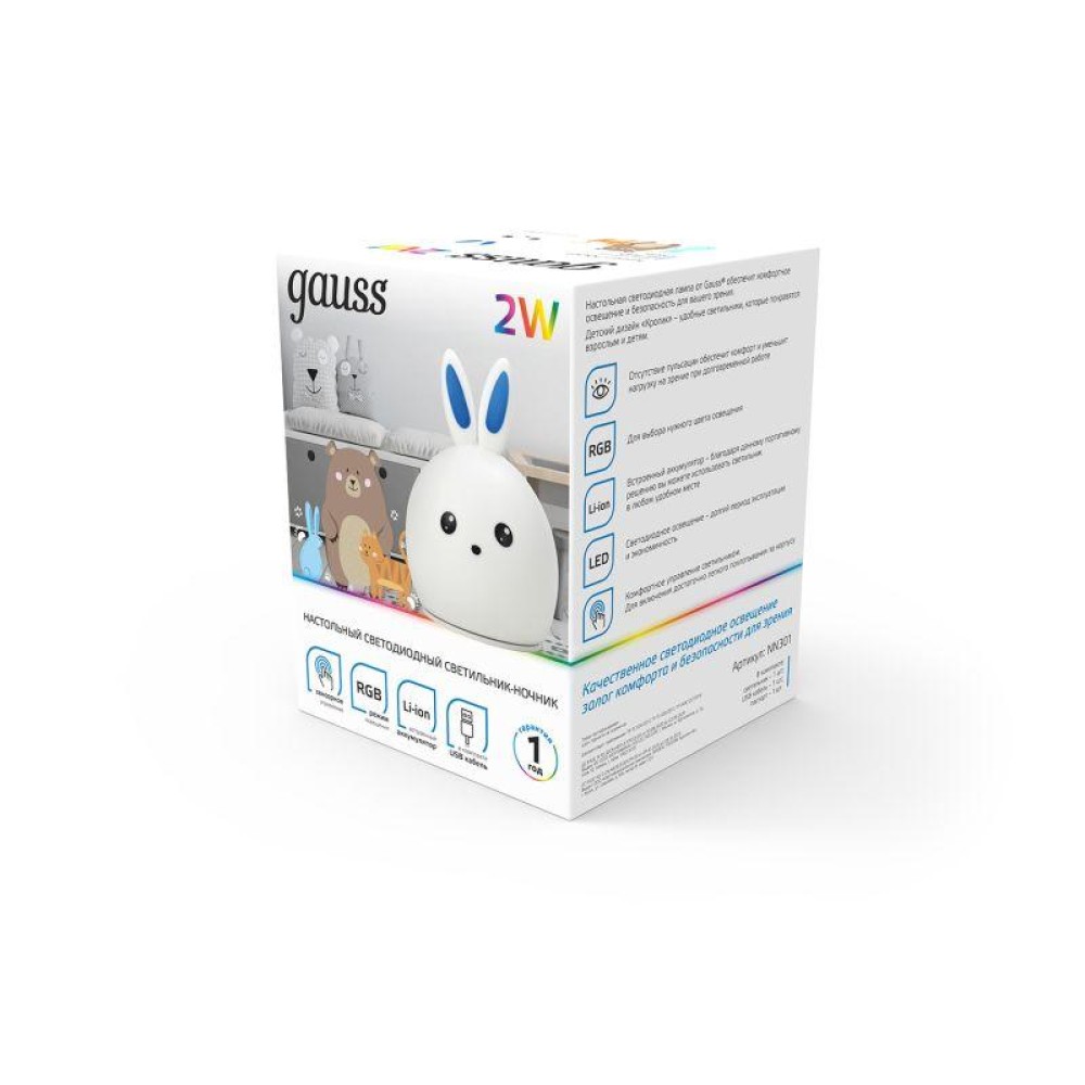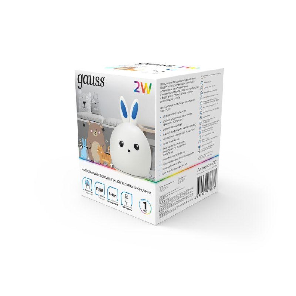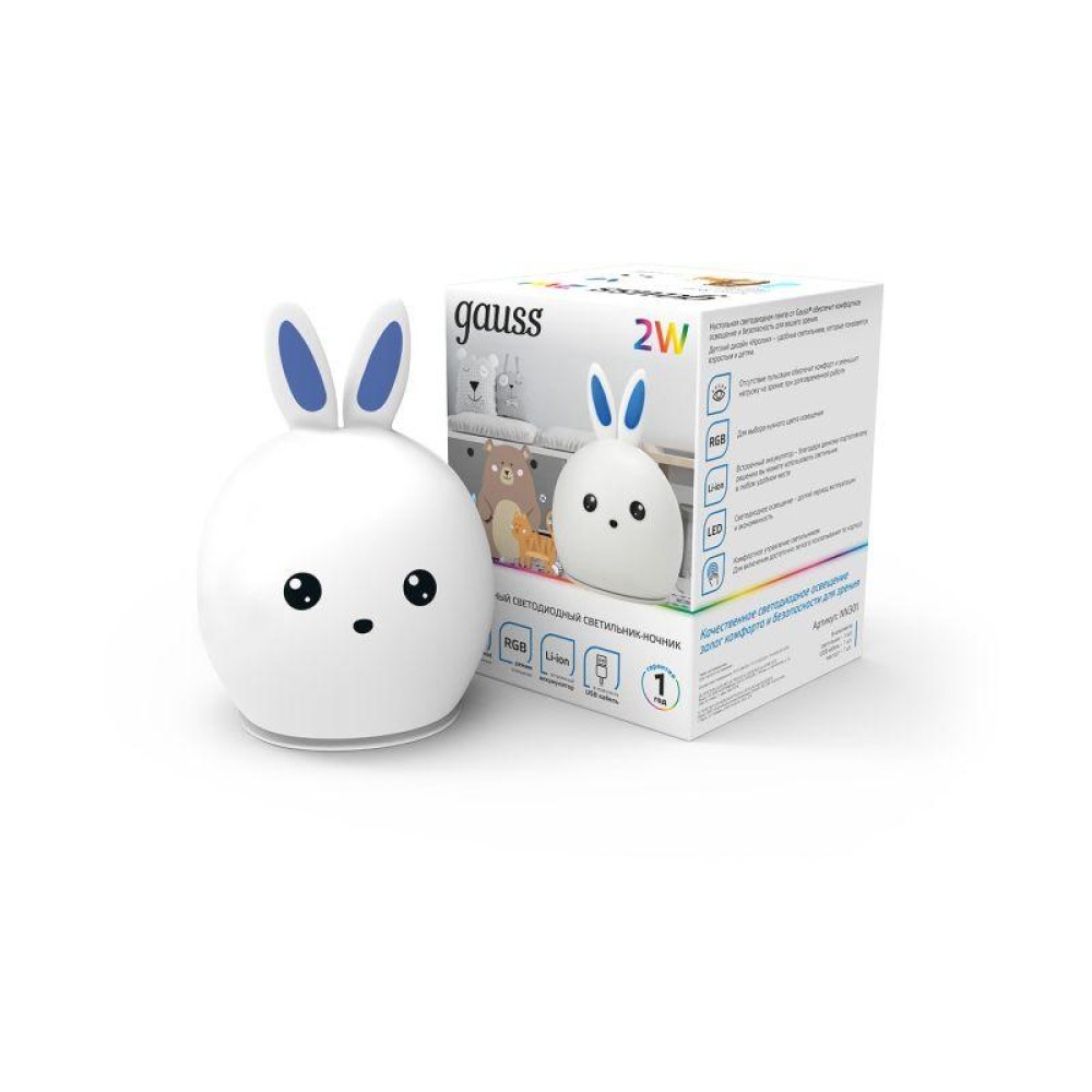 Светильник настольный 2Вт RGB кролик аккум. Li-ion USB кабель детский ночник бел. GAUSS NN301