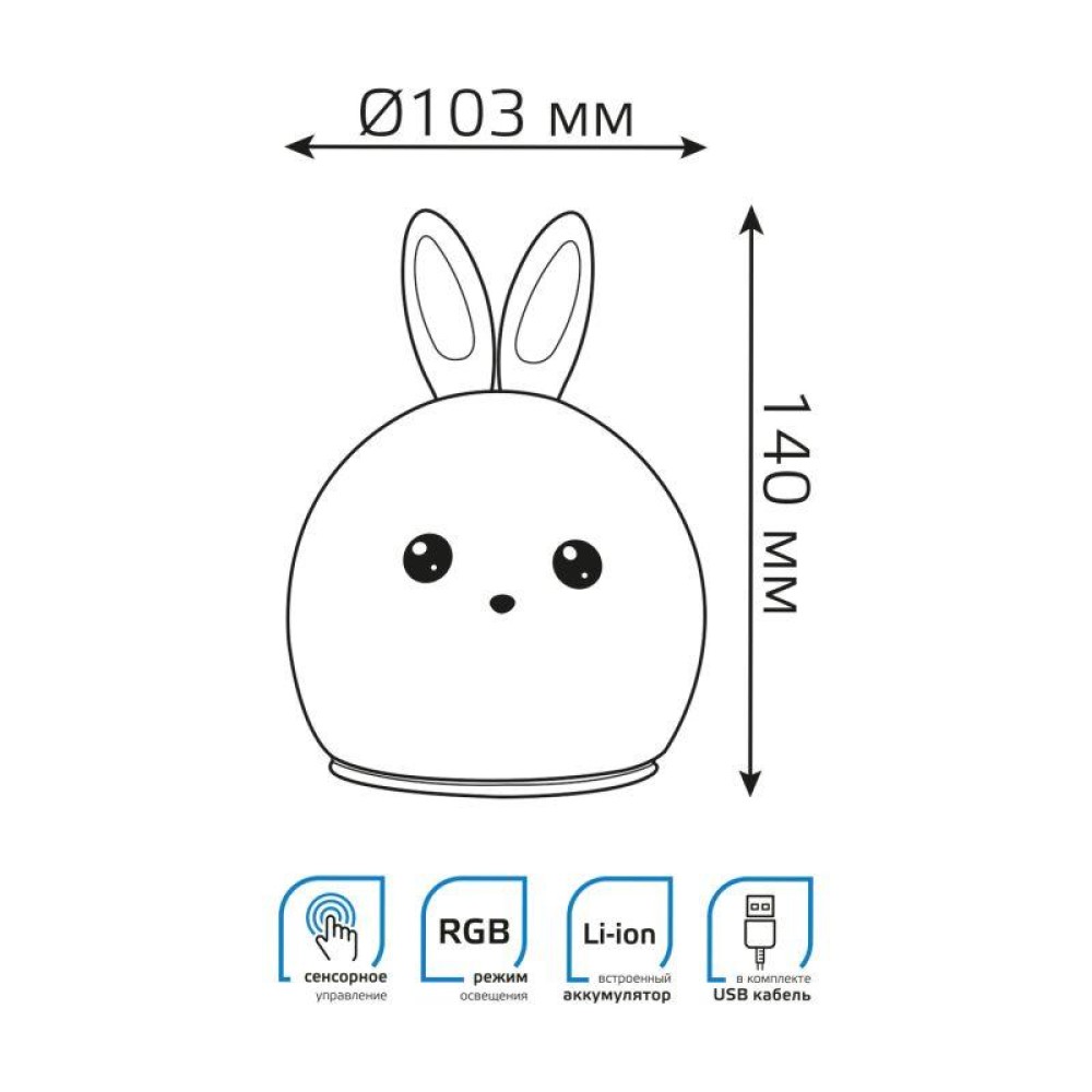 Технические характеристики Светильник настольный 2Вт RGB кролик аккум. Li-ion USB кабель детский ночник бел. GAUSS NN301
