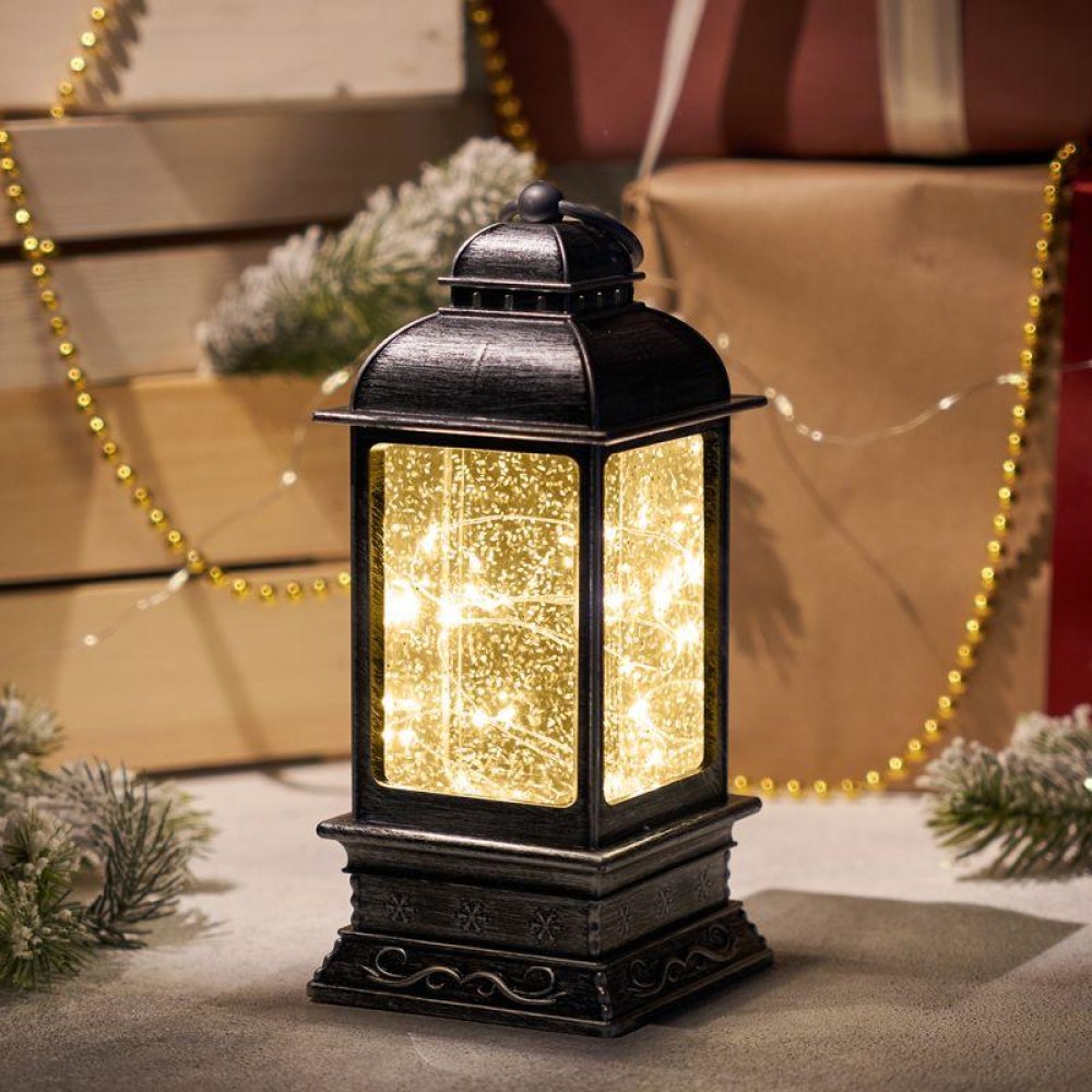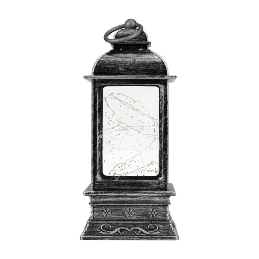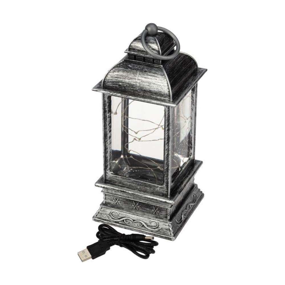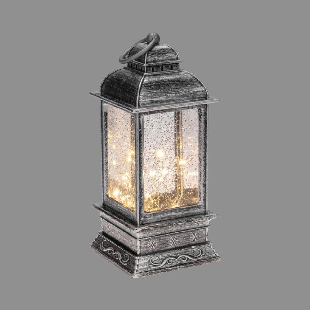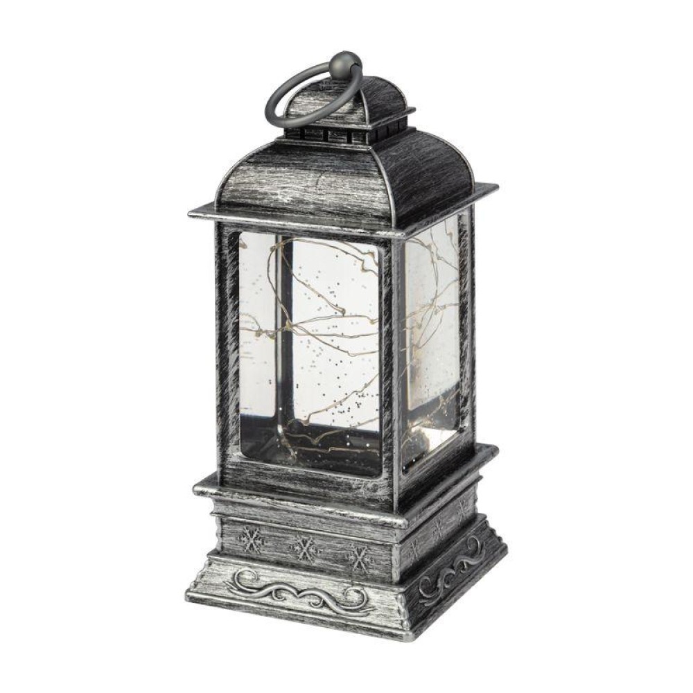 Декоративный светильник «Сияние» высотой 24 см выполнен в цвете серый металлик с эффектом состаренной поверхности. Прозрачная колба, наполненная специальной жидкостью, подсвечивается 18 диодами, которые излучают приятный белый свет теплого оттенка. Серебристое конфетти наполняет светильник великолепным сиянием, заставляющим подолгу наблюдать за причудливой игрой мерцающих частиц. Изделие получает питание от 4 батареек типа ААА, что делает его мобильным и абсолютно безопасным. В комплект входит USB-кабель, позволяющий подключить фонарь к сети через адаптер.
