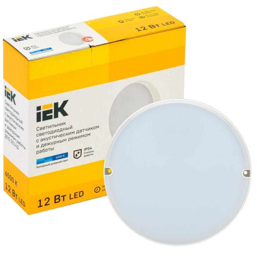 Технические характеристики Светильник светодиодный ДПО 2014Д 12Вт 6500К IP54 дежурный круг с АД IEK LDPO3-2014D-12-6500-K01
