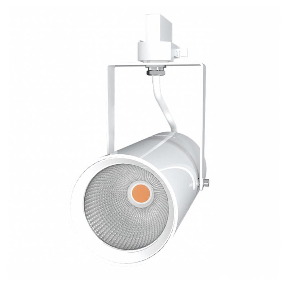 Светодиодный светильник FT 85 30W CRI80 RAL9016 4000K PI45 трековый с фиксированным углом раскрытия светового потока, предназначенный для акцентного (направленного) освещения магазинов, бутиков, автосалонов, выставочных центров, рабочих мест. Устанавливается на шинопровод.