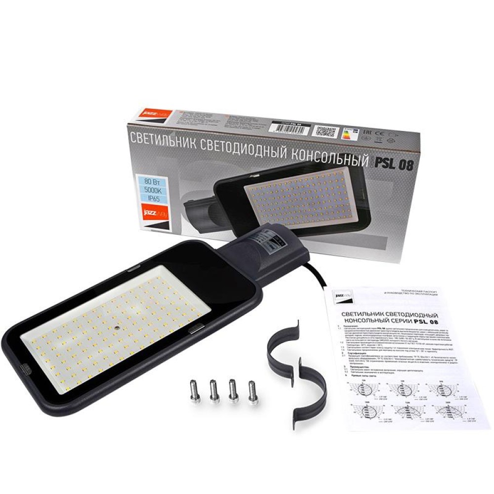 Технические характеристики Светильник светодиодный PSL 08 80Вт 5000К GR 120град. уличный консольный ДКУ IP65 Pro JazzWay 504580