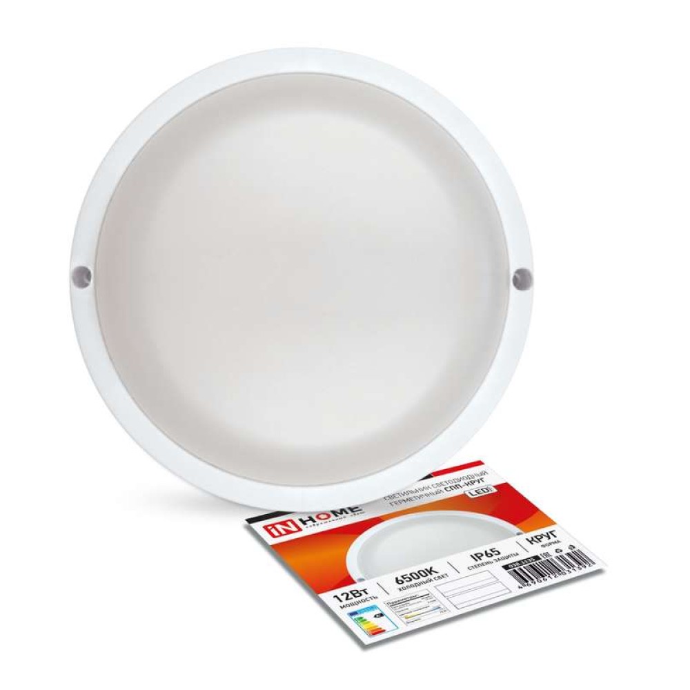Технические характеристики Светильник светодиодный СПП-КРУГ 12Вт 6500К IP65 960лм 230В герметичный IN HOME 4690612031392