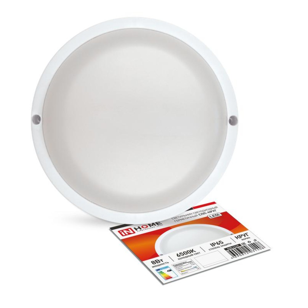 Технические характеристики Светильник светодиодный СПП-КРУГ 8Вт 6500К IP65 640лм 230В герметичный IN HOME 4690612031408
