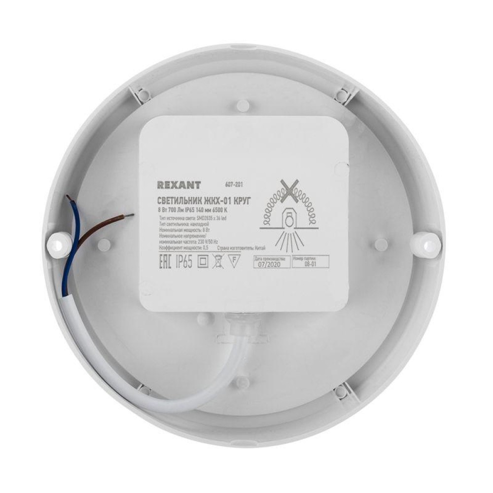 Светильник светодиодный ЖКХ-01 8Вт 6500К IP65 700лм 140мм пылевлагозащ. круг Rexant 607-201