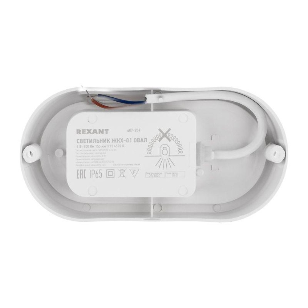 Технические характеристики Светильник светодиодный ЖКХ-01 8Вт 6500К IP65 700лм 155мм пылевлагозащ. овал Rexant 607-204