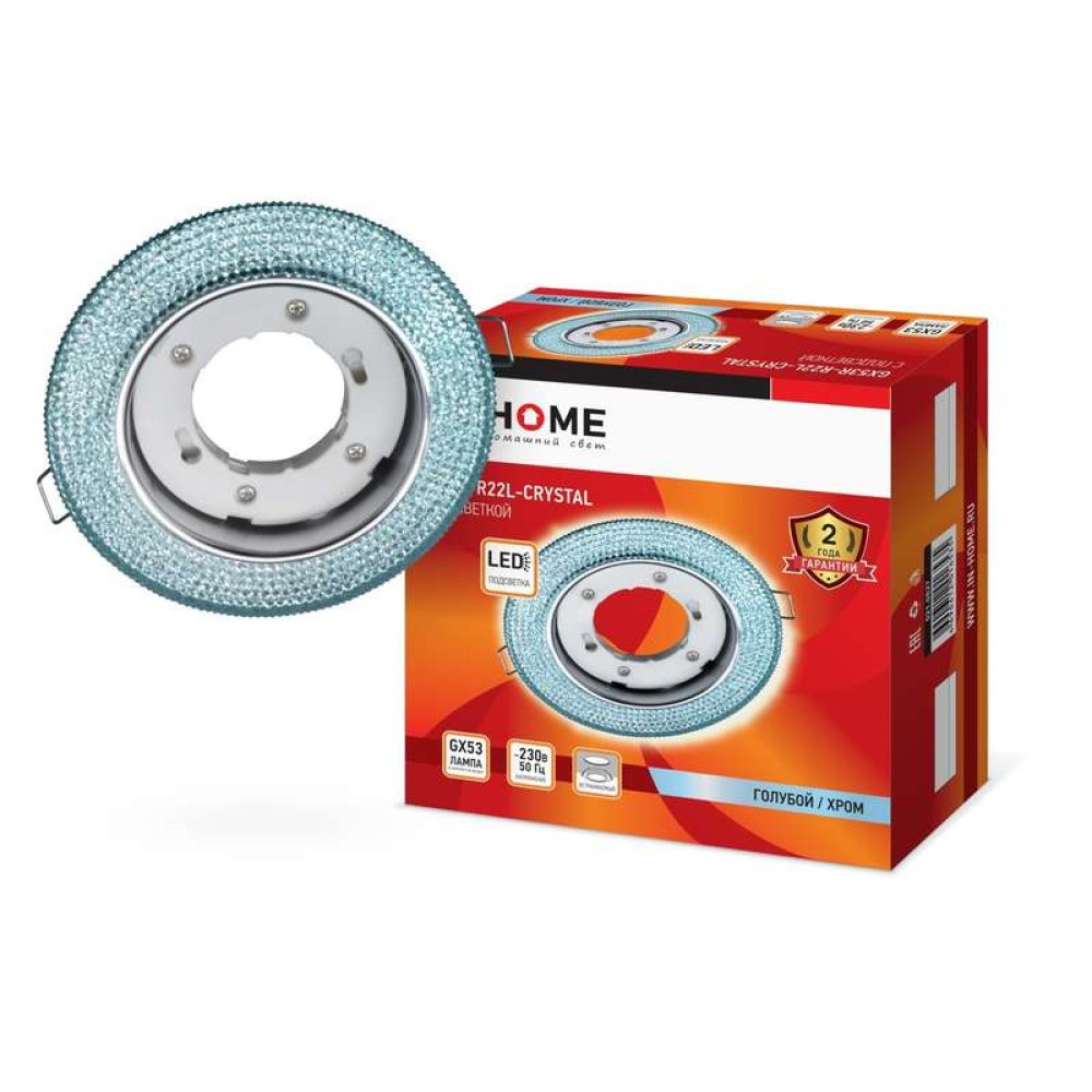 Технические характеристики Светильник точечный GX53R-R22L-crystal GX53 IP20 230В встраив. с подсветкой голуб./хром. IN HOME 469