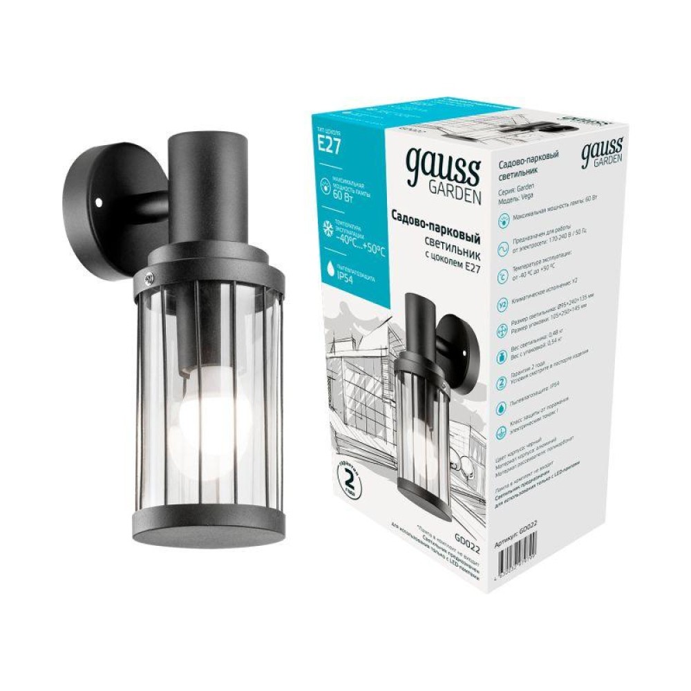 Технические характеристики Светильник Vega 60Вт E27 IP54 105х105х240мм НТУ садово-парковый на стену вниз GAUSS GD022
