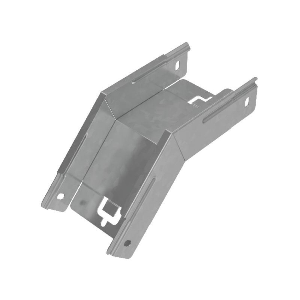 Угол внешний вертикальный серии "PLUS" предназначен для направления кабельной трассы вниз под углом 45 градусов, при этом плавный изгиб предотвращает повреждение кабельной трассы при её прокладке. Элемент подходит для соединения c металлическим листовым лотком этой же серии шириной 100 мм и высотой борта 50 мм. Изделие выполнено из стали оцинкованной по методу Сендзимира. Предназначено для применения в местах предпочтительно с сухим климатом, внутри помещений и в слабоагрессивных средах, в соответствии с ГОСТ 15150-69. Специальные соединительные лепестки на корпусе секции обеспечивают необходимую жёсткость конструкции стыкового узла и целостность трассы. Для дополнительной защиты элемента кабельной трассы от механических повреждений используйте крышку для угла.