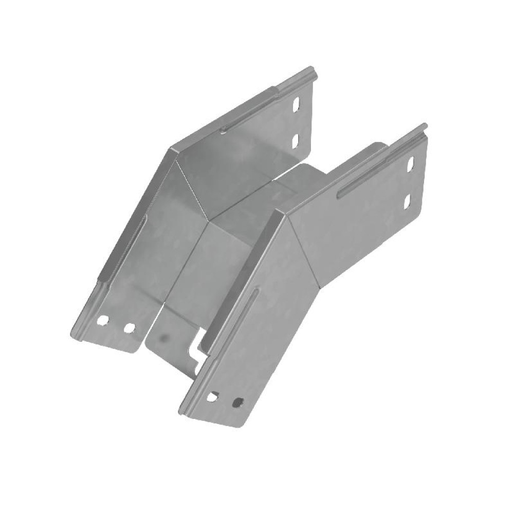 Угол внешний вертикальный серии "PLUS" предназначен для направления кабельной трассы вниз под углом 45 градусов, при этом плавный изгиб предотвращает повреждение кабельной трассы при её прокладке. Элемент подходит для соединения c металлическим листовым лотком этой же серии шириной 100 мм и высотой борта 80 мм. Изделие выполнено из стали оцинкованной по методу Сендзимира. Предназначено для применения в местах предпочтительно с сухим климатом, внутри помещений и в слабоагрессивных средах, в соответствии с ГОСТ 15150-69. Специальные соединительные лепестки на корпусе секции обеспечивают необходимую жёсткость конструкции стыкового узла и целостность трассы. Для дополнительной защиты элемента кабельной трассы от механических повреждений используйте крышку для угла.