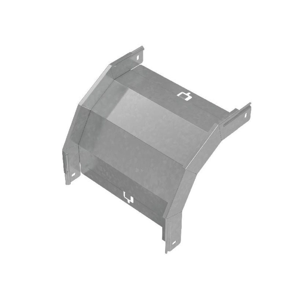 Для направления кабельной трассы вниз под прямым углом используется угол внешний вертикальный 90 градусов серии "PLUS", при этом плавный изгиб предотвращает повреждение кабельной трассы при её прокладке. Элемент подходит для соединения c металлическим листовым лотком этой же серии шириной 300 мм и высотой борта 50 мм. Изделие выполнено из стали оцинкованной по методу Сендзимира. Предназначено для применения в местах предпочтительно с сухим климатом, внутри помещений и в слабоагрессивных средах, в соответствии с ГОСТ 15150-69. Специальные соединительные лепестки на корпусе секции обеспечивают необходимую жёсткость конструкции стыкового узла и целостность трассы. Для дополнительной защиты элемента кабельной трассы от механических повреждений, попадания пыли и мусора, используйте крышку для угла серии "PLUS".