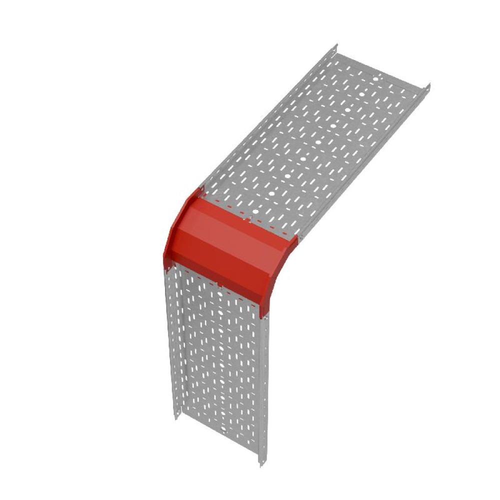 Для направления кабельной трассы вниз под прямым углом используется угол внешний вертикальный 90 градусов серии "PLUS", при этом плавный изгиб предотвращает повреждение кабельной трассы при её прокладке. Элемент подходит для соединения c металлическим листовым лотком этой же серии шириной 400 мм и высотой борта 50 мм. Изделие оцинковано методом горячего погружения согласно ГОСТ 9.307-89 и используется для монтажа в помещениях с высокой влажностью и низкой загрязненностью, под открытым небом и в слабокоррозийной среде, в соответствии с ГОСТ 15150-69. Специальные соединительные лепестки на корпусе секции обеспечивают необходимую жёсткость конструкции стыкового узла и целостность трассы. Для дополнительной защиты элемента кабельной трассы от механических повреждений, попадания пыли и мусора, используйте крышку для угла серии "PLUS".