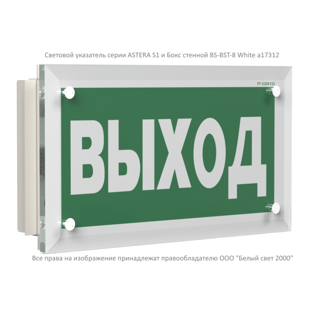 Световой указатель предназначен для установки на поверхность стен, встройки в стены из гипсокартона. а также для установки в капитальные стены при помощи бокса стенного BS-BST-7, который заделывается в стену.